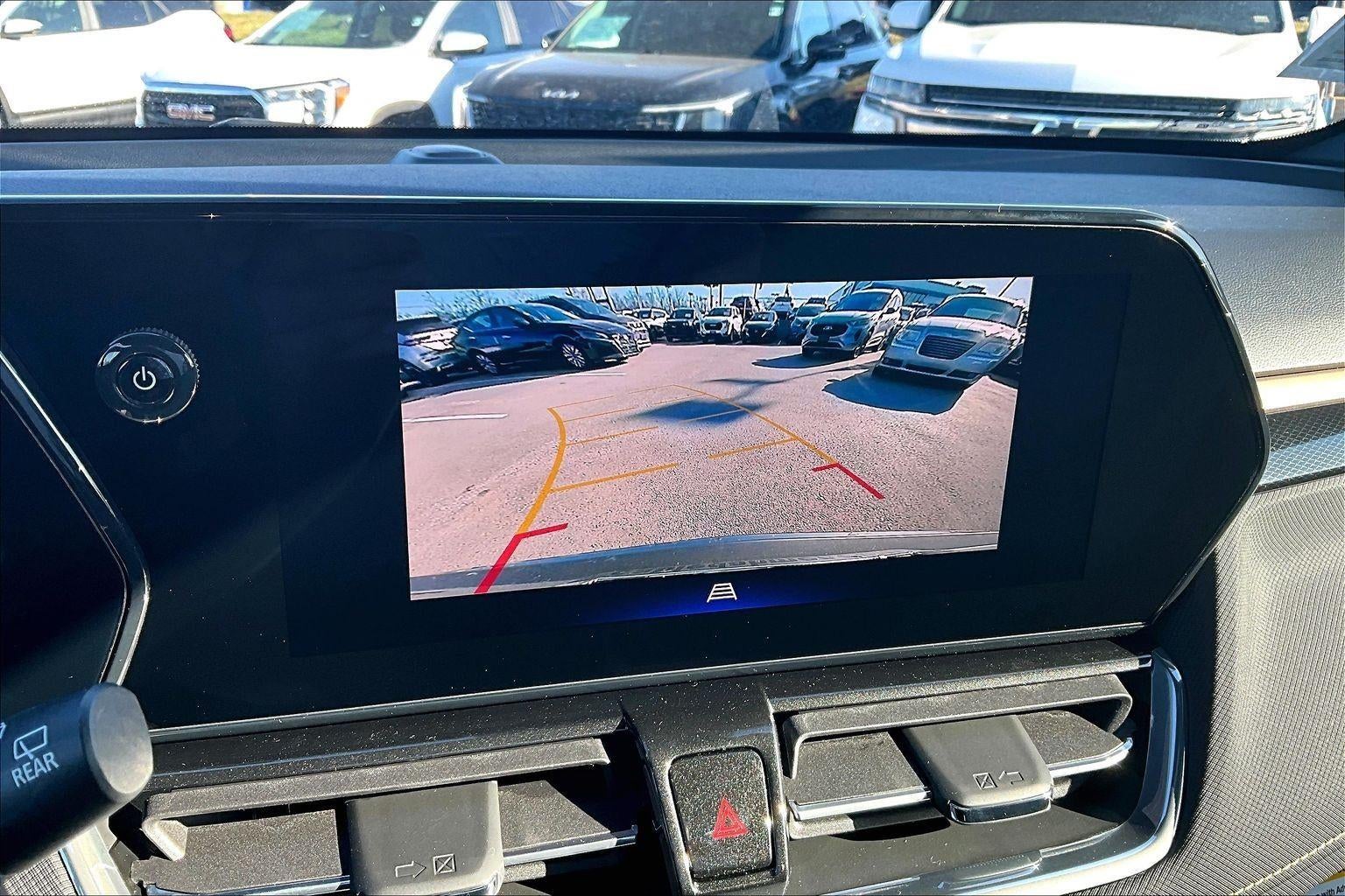 - The vehicle is equipped with a camera that displays an image of the area behind the vehicle on an interior display.