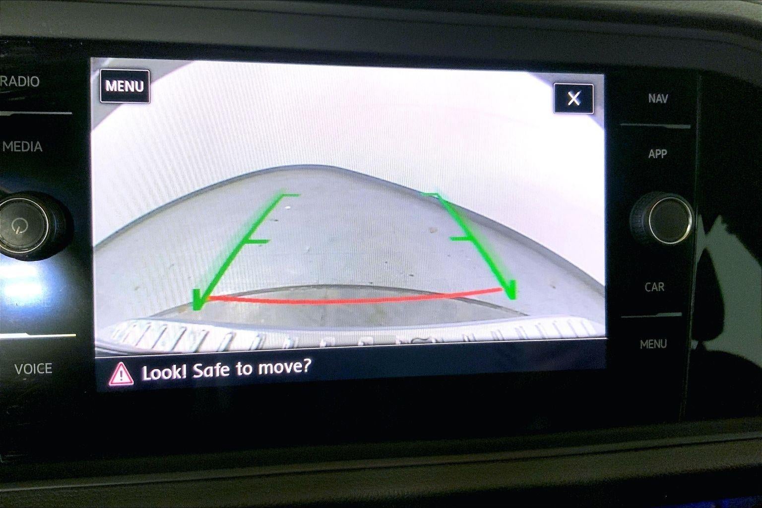 - The vehicle is equipped with a camera that displays an image of the area behind the vehicle on an interior display.