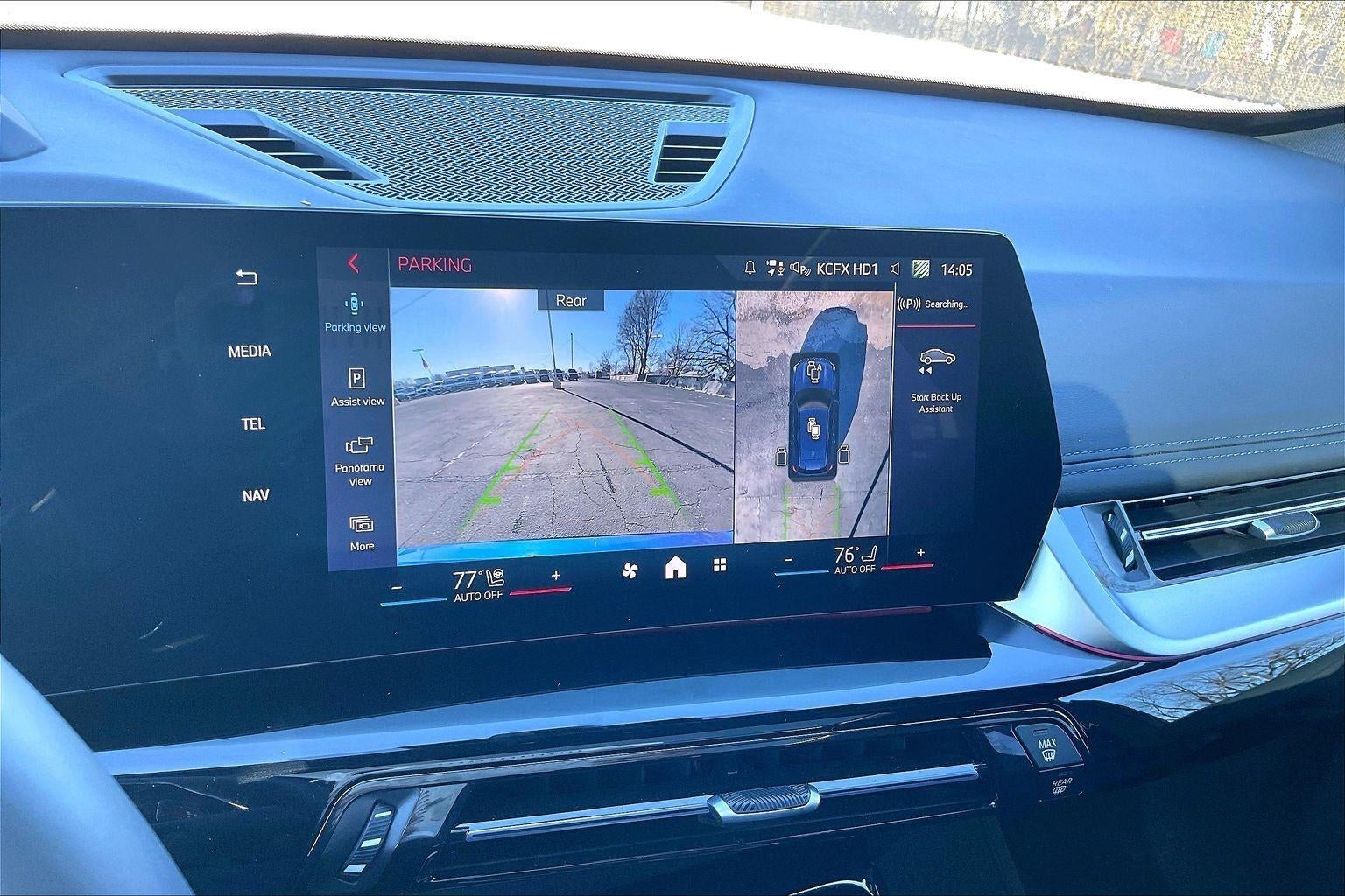 - The vehicle is equipped with a camera that displays an image of the area behind the vehicle on an interior display.