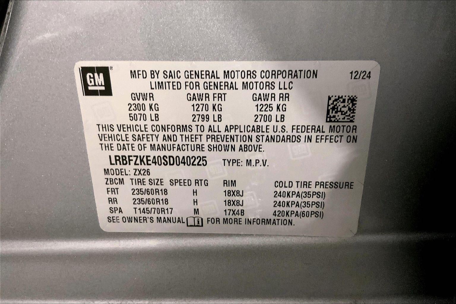 - Tires, P235/60R18 all-season