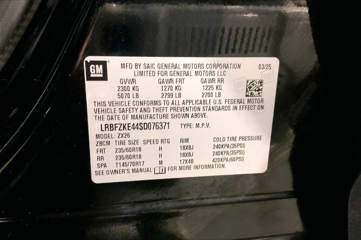 - Tires, P235/60R18 all-season