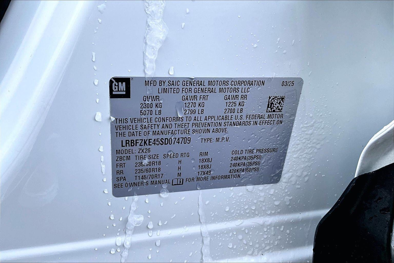 - Tires, P235/60R18 all-season