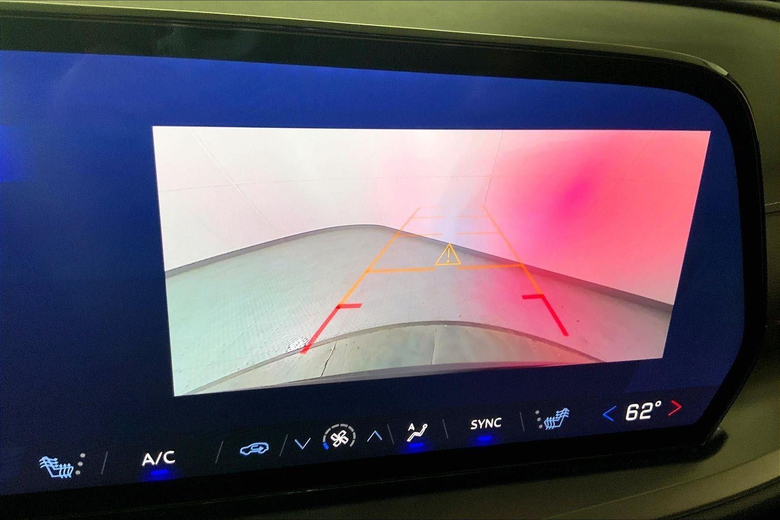 - The vehicle is equipped with a camera that displays an image of the area behind the vehicle on an interior display. The camera is equipped with its own washer.