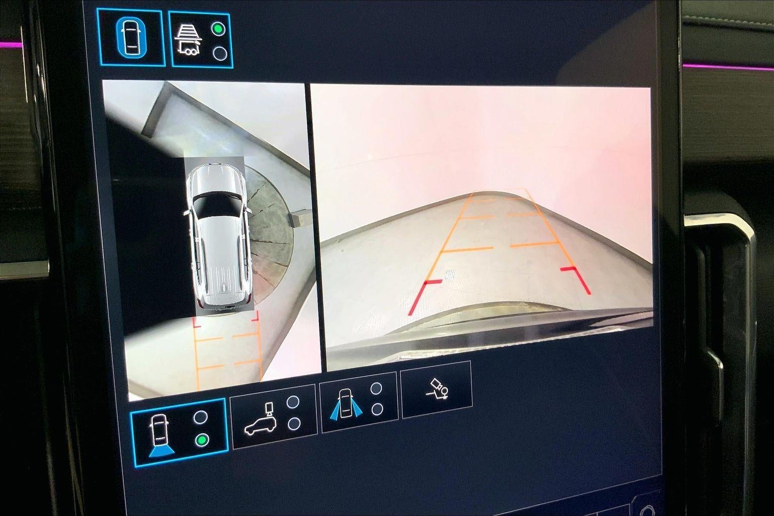 - The vehicle is equipped with a camera that displays an image of the area behind the vehicle on an interior display. The camera is equipped with its own washer.
