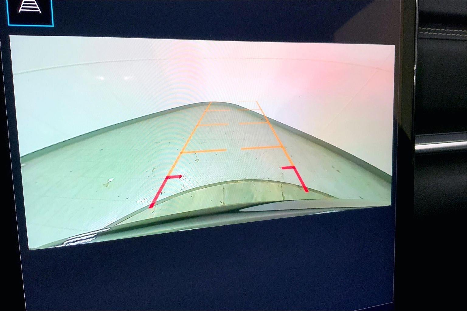 - The vehicle is equipped with a camera that displays an image of the area behind the vehicle on an interior display.
