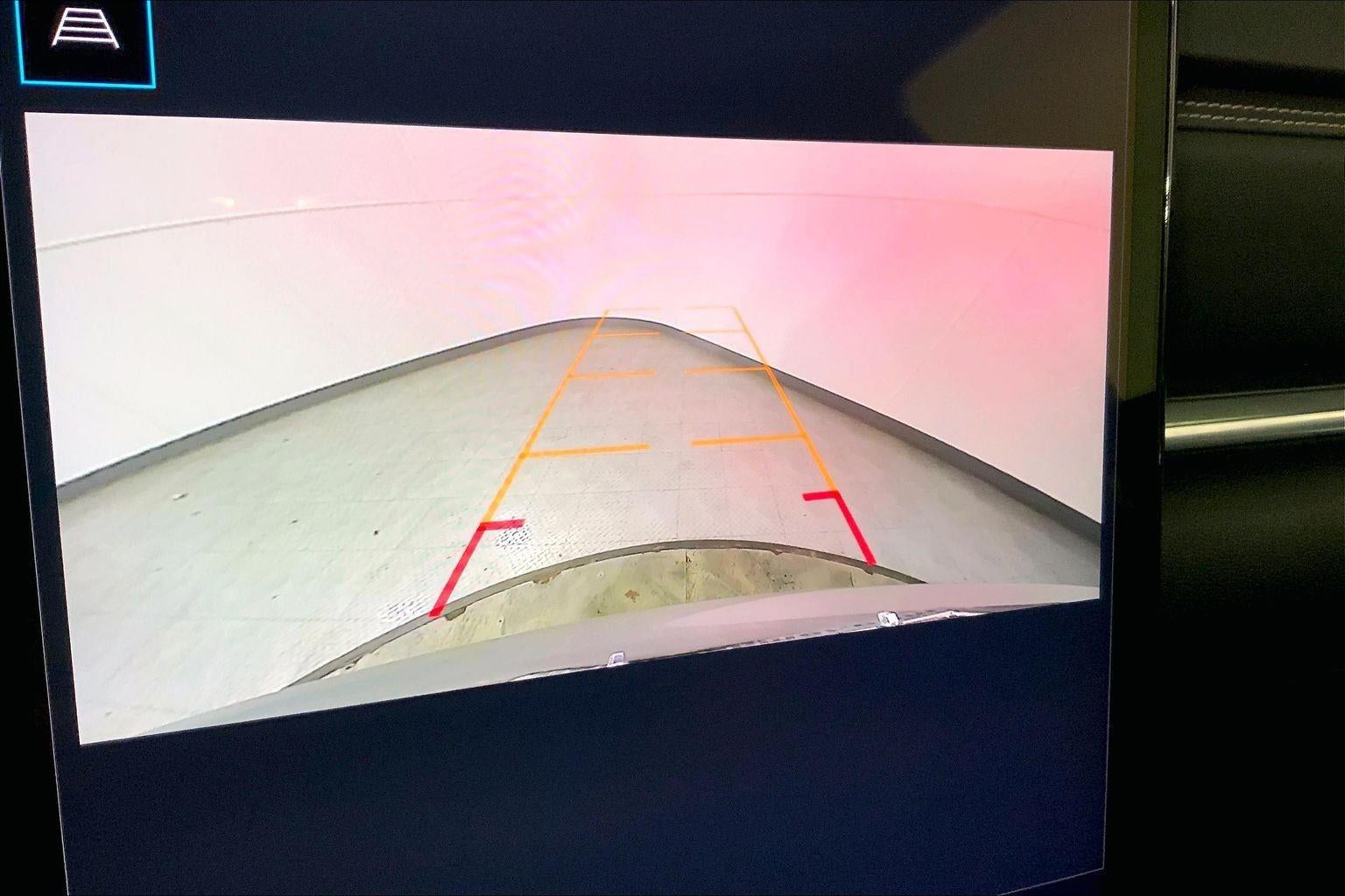 - The vehicle is equipped with a camera that displays an image of the area behind the vehicle on an interior display.
